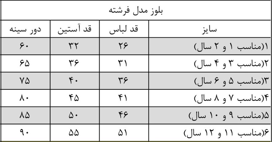 / سایز 1-2 سال / سایز 3-4 سال / سایز 5-6 سال / سایز 7-8 سال / سایز 9-10 سال / سایز 11-12 سال