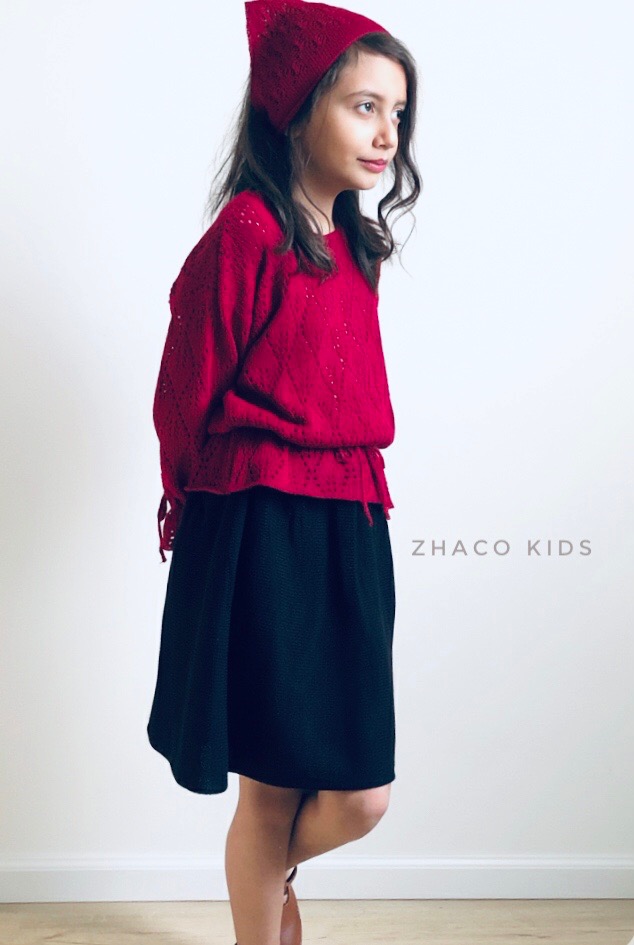 سایز 4-6 سال پهنای لباس 40 قد لباس 41 قد آستین از کنار یقه 45 سایز 7-9 سال پهنای لباس 43 قد لباس 46 قد آستین از کنار یقه 50 یک تا دو سانت خطای اندازه گیری در نظر بگیرید